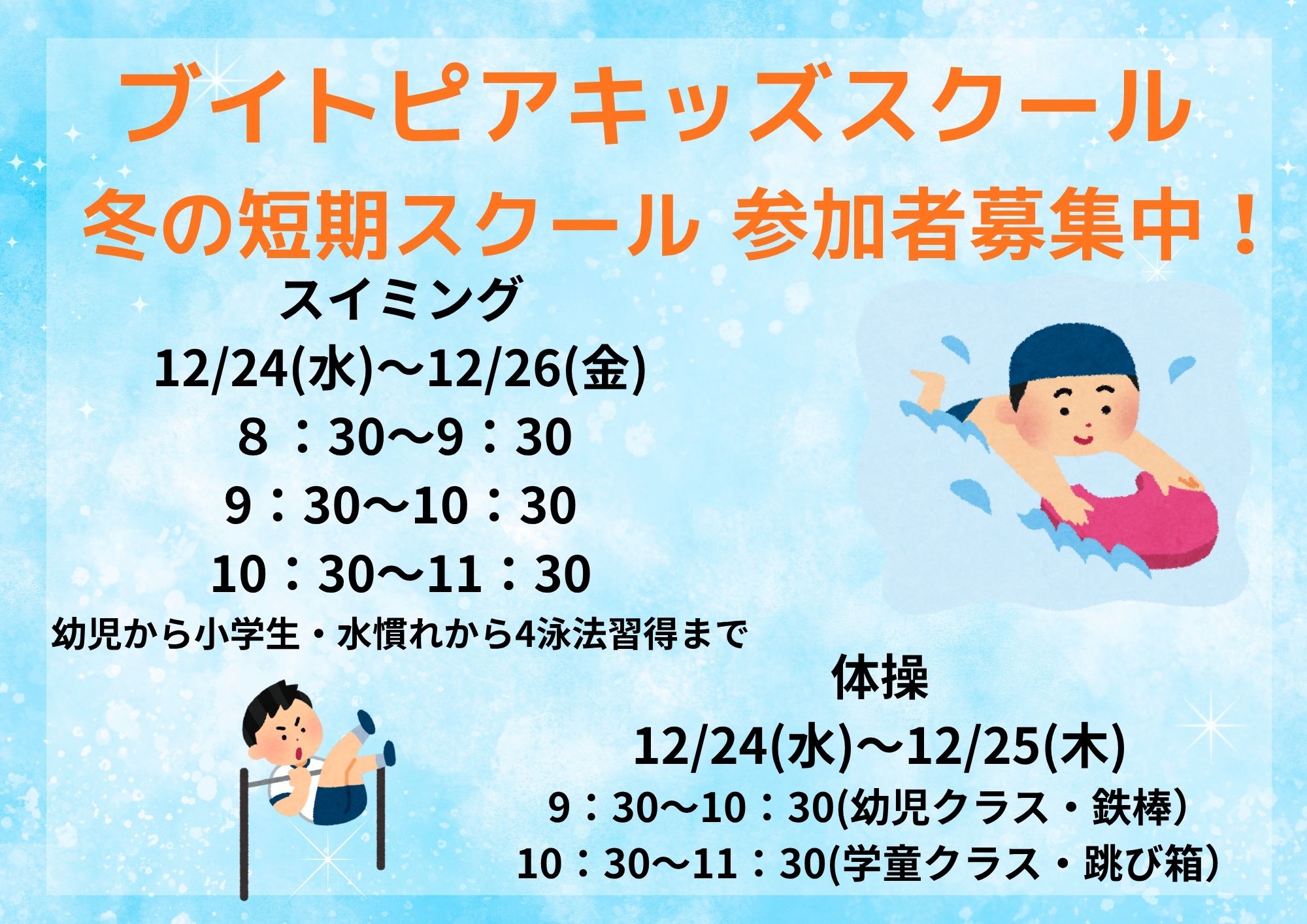 - 【Vキッズ】12月冬の短期スクールのご案内 11/3(月)受付開始